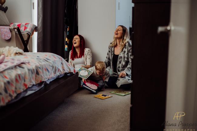 Although my focus is not on ‘posing’ families – but rather ‘guiding’ them – there is a little more posing that happens with location shoots compared to lifestyle. This comes in part from people being more comfortable in their home, which allows me to guide you into a room or a particular spot – and then just watch what normally happens. For example, you may want to record reading bedtime stories to your little one on their bed. I may guide you all to be there, but then I’ll simply be photographing what is naturally occurring as you read that story. In each room or place in your home, you’re more likely to just do what comes naturally, and I’ll be there to capture it.