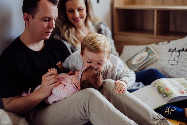 This is extra perfect when you have siblings involved! Your other kids are able to be in their own environment, and they’re able to come in and out as they like without any pressure. They can immerse themselves in their favourite toy or favourite book, and you can capture those memories together as a family. There is no pressure to ‘perform’ during a newborn lifestyle shoot.