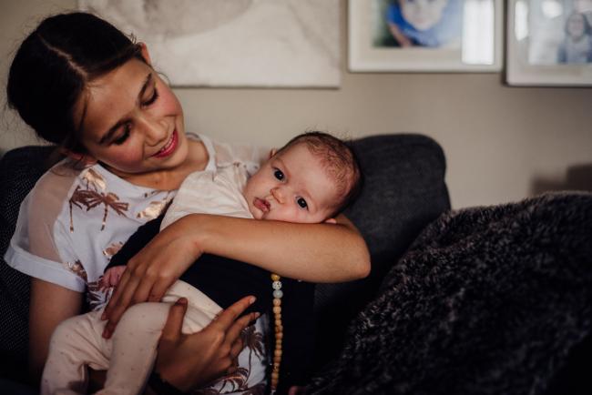 I like to try and focus on the things that you do regularly with your baby – the couch you might sit on, the wrap you might wrap them in, the carrier you wear them in, the multi-tasking in the kitchen, and anything else that’s important and relevant to you and your life. These sessions are personal and totally dependent on what your ‘real life’ is like. One day you’ll be able to look back on your images and remember what time was like during that period in your life – what it looked like, felt like, sounded like – and you’ll also be able to realise how fleeting it all was. How quickly it all changes, how fast your baby grows and how special each and every day with them is. Even the tough days. Newborn lifestyle sessions really allow you to FEEL something when you look back on them – it’s a very specific, very fleeting, and extremely special part of your life.
