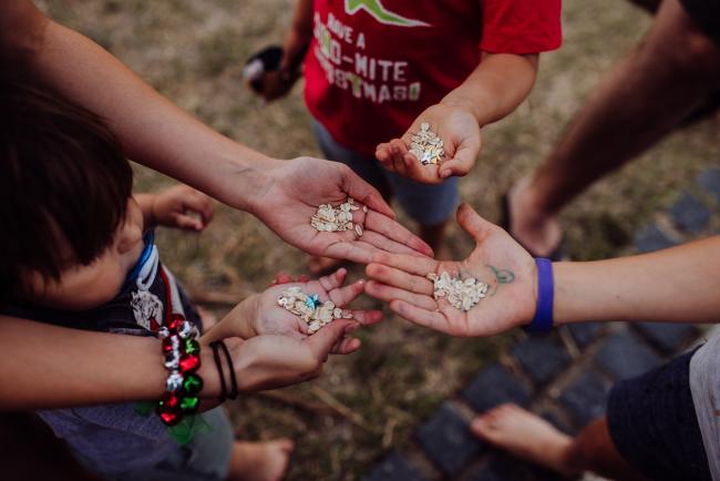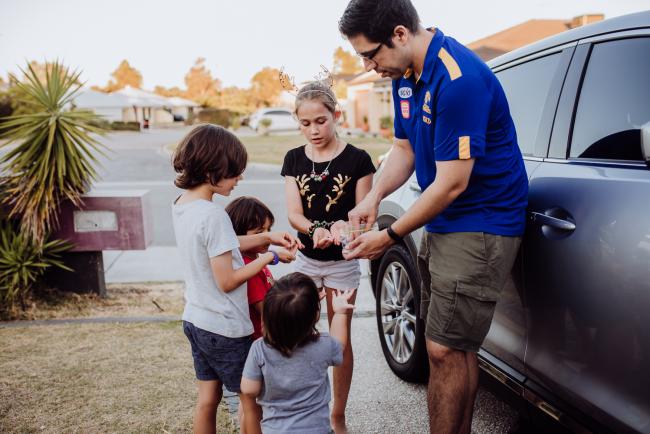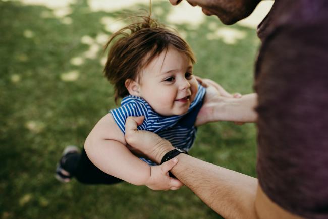 Kids love games, and games are great for adults too! Think tickles, flying in the sky, spinning, follow the leader, jumping, running races, blowing bubbles, piggy back rides, lifting each other up, Simon Says, Chinese Whispers, and other games like this which encourages movement and interaction. This helps to loosen everyone up and bring out those genuine emotions!