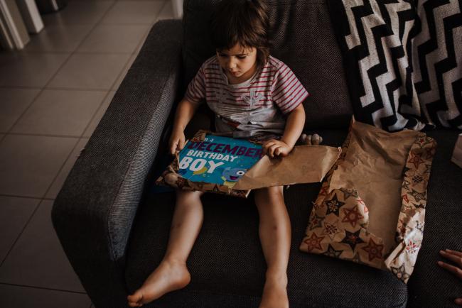 April 12th was Alby’s second birthday. He’s my youngest baby and my last baby, and turning two just brings out a lot of emotions in me, because it really means that he’s not a baby anymore. He’s a real little person with a real personality (a crazy, loud, energetic one at that!). He’s the last of so many things for me. My last pregnancy. My last birth. My last breastfeed. The last crawling baby, and learning to walk baby. The last ‘firsts’ of everything. And it’s gone fast. Crazy, crazy fast. I know in the next year he’s set to grow and change so much yet again. So for now, I’ll just enjoy the way he is and capture him whenever I can. These photos are taken on his birthday as he opened his presents, including a card written by Louie and a watermelon card from Alexi (because he just loves watermelon!). Oh and shh don’t tell him that it’s actually Christmas wrapping paper!
