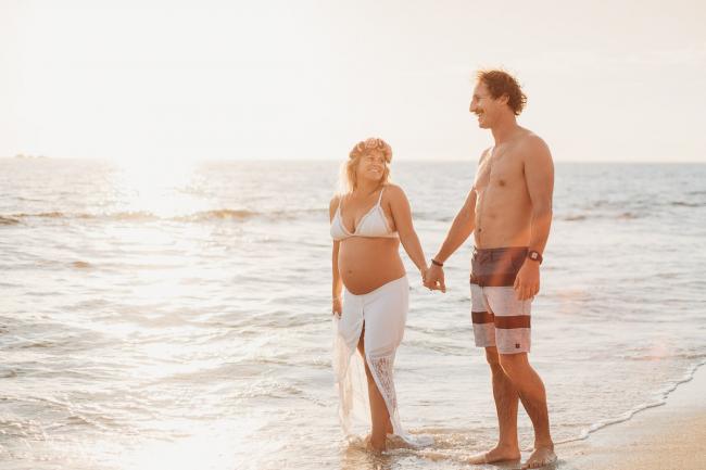 - Burns Beach. This location is most popular for maternity shoots. It can be more challenging with family shoots depending on ages of the children, due to the water. Burns Beach is beautiful as it also provides some rocks and greenery as a backdrop, without needing to solely rely on the water backdrop. The absolute best time of the day for a beach session is the Golden Hour – the hour before sunset. I generally don’t like to shoot here outside of those hours unless the day is particularly overcast, or if timing wise the shoot needs to be at another time. Maternity sessions here are beautiful – the setting sun makes a great backdrop to a pregnant tummy.